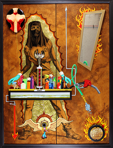 AD-VICE, oil on canvas inserted into wooden panels with mixed media, 84h x 64w, 2013