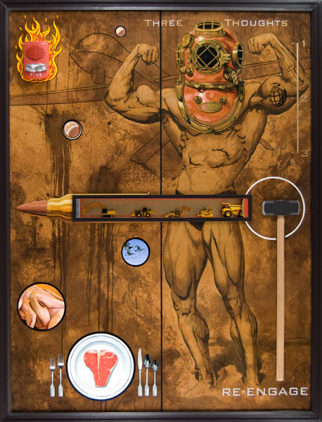 RE-ENGAGE SKETCH, oil and mixed media on wooden panel, 32h x 24w, 2010 SOLD