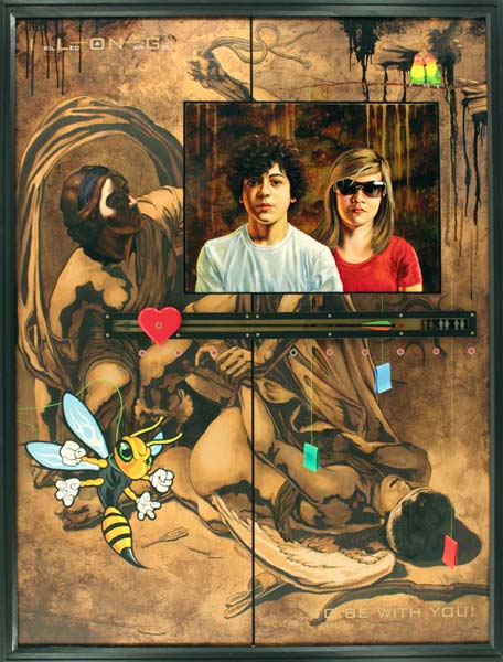 TO BE WITH YOU, oil and gold leaf on canvas, mixed media on wooden panels, 84h x 64w, 2010