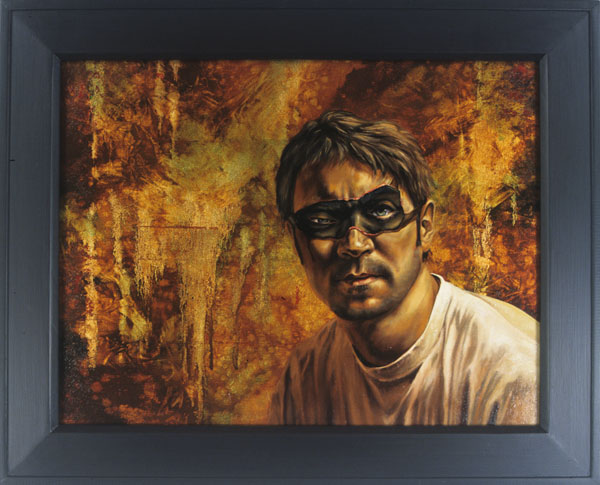 MAN WITH BLACKEYES, oil/gold leaf on canvas, 32h x 39w, 2002 SOLD