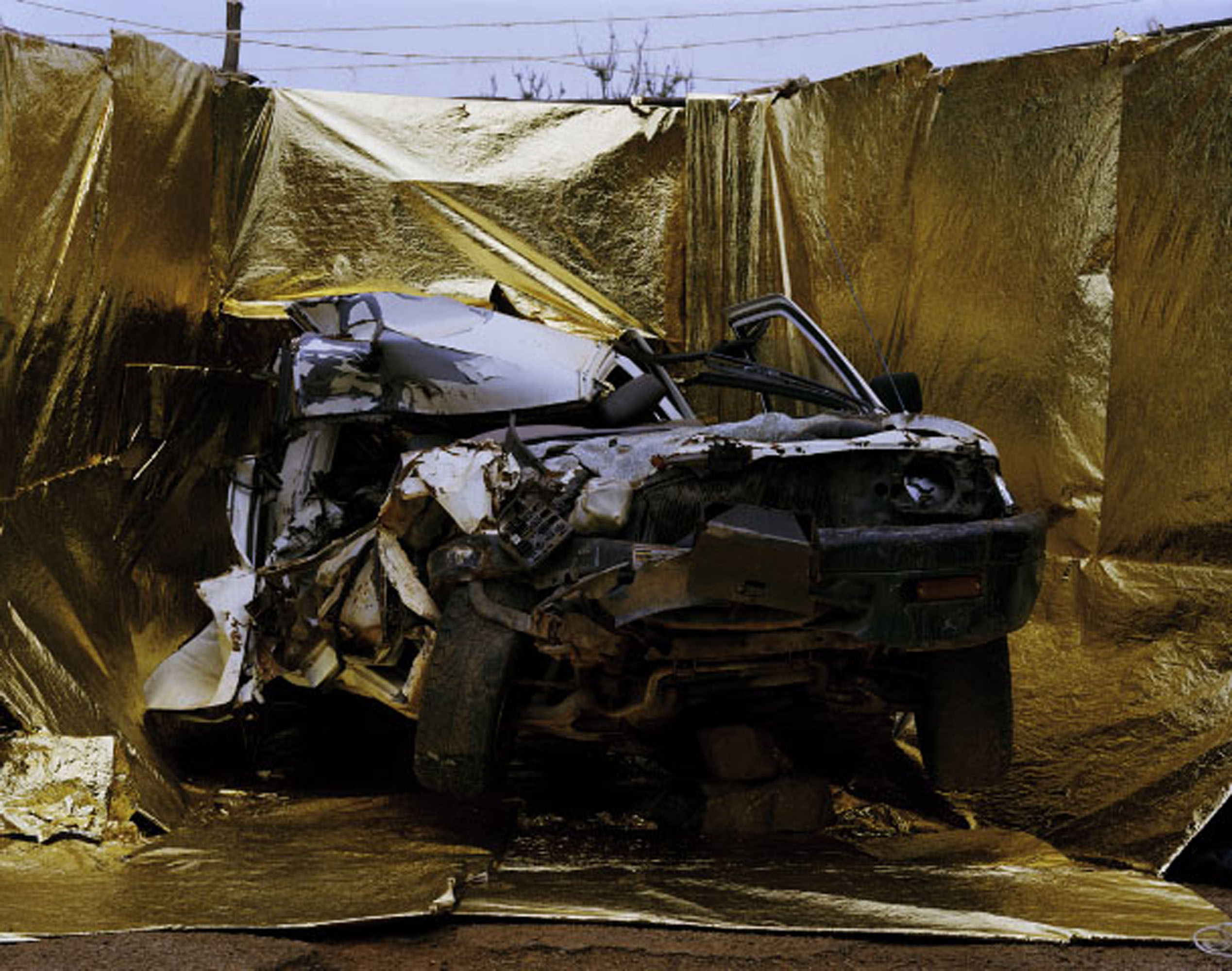 In the other suite of photographs Mr. Garmusch offers portraits of car-wrecks that make suspicious alliances with the