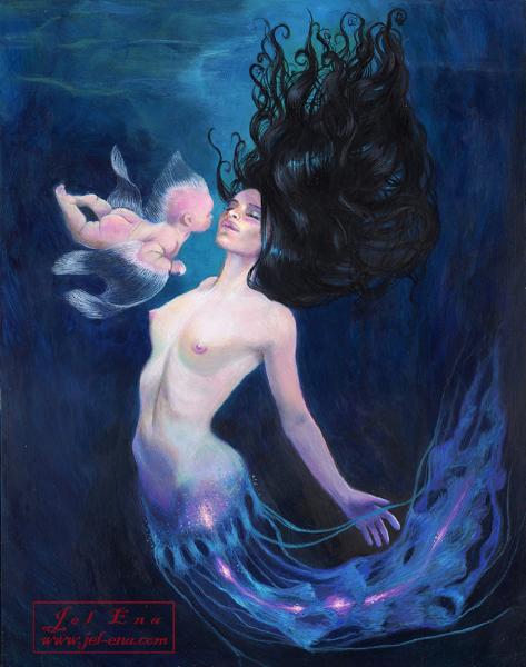 | Medusa's Dream - SOLD acrylic and pastel on clayboard 11 x 14 in. |