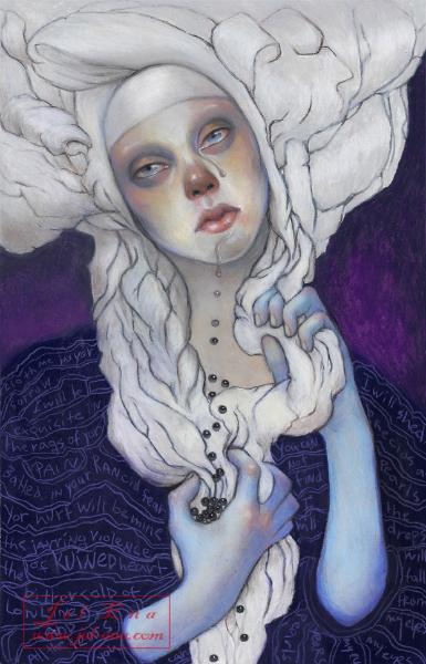 | Melancholia - SOLD acrylic and pastel on wood, 7 in. |