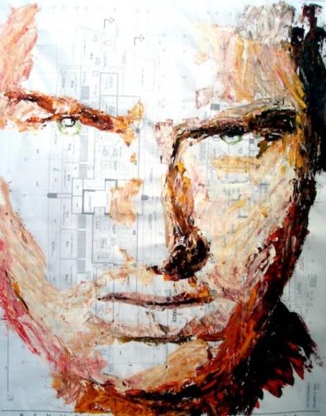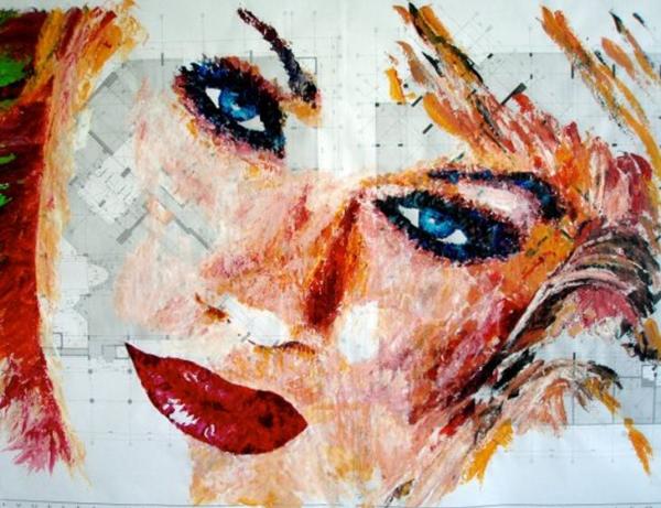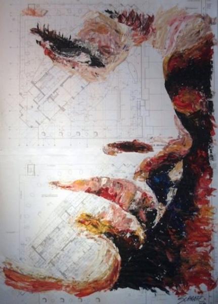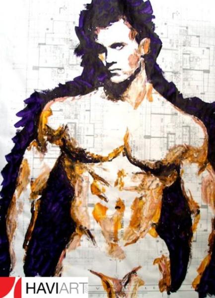 Havi: I love in particular one of my first portraits, this make me notice I have the potential to paint the human face. Prior to this I only painted in abstract form, then one day I was hanging out with a Friend Carolina Aramburo, a "Landmark Education's Forum Leader", we started discussing about me moving into art and we planned to do a week long of art works. This was to create the new life, a designed life as an ARTIST and that's when I began to paint portraits, using the architect's blueprints paper. Later I noticed myself the "architect" and the "artist" in one (My Painting) and it worked so well together, it was a combination of all the knowledge of 7 masters and the Power, Energy and Enthusiasm of the Artist. My soul is the artist, my mind is the architect, urban planer, the graphic and interior designer...