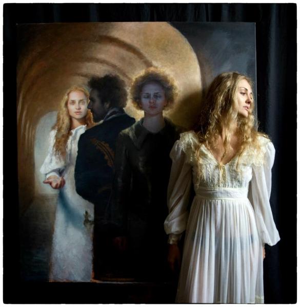 | standing with my painting, "tunnel" |